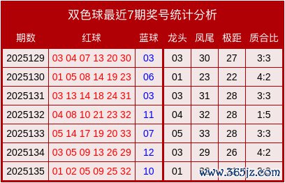 上期双色球的开奖号码中,首尾组合为01+32,跨度为31,质合比为3:3。